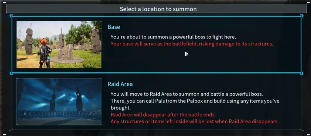 If you start a raid by selecting a Raid Area instead of a Base, you’re given a little over 4 minutes to build Pal Boxes and prepare your Pals—just like when doing raids at a Base.