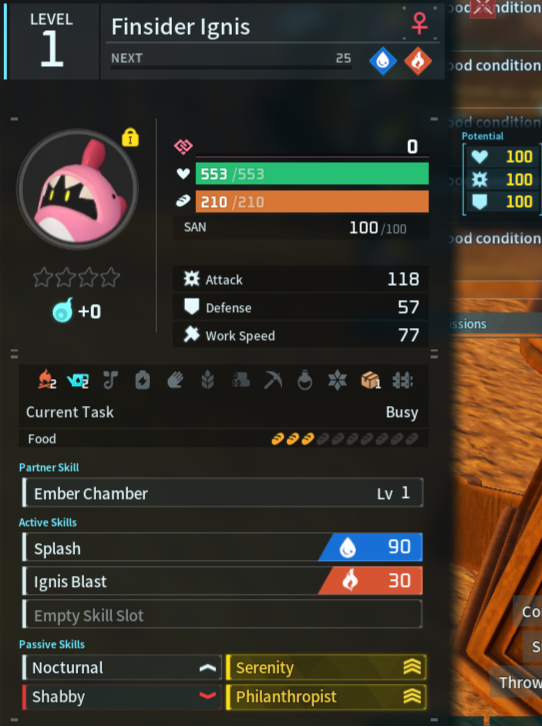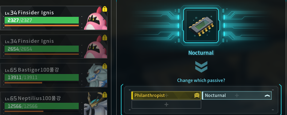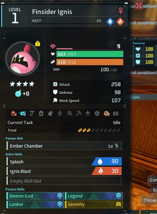 Creating an “End-game” Pal is such a long and grueling journey… It might be manageable if you only needed one, but the real challenge is that you also have to fully condense them. Plus, Finsider Ignis has a unique synergy where they buff each other’s stats, meaning I have to build an entire team of them. 🙂 ….. haha. If you’re lucky enough to have plenty of leftovers from the initial “100” grind, you’re in good shape. If not? Well, it’s back to infinite breeding until you have enough for that Max Condensation.