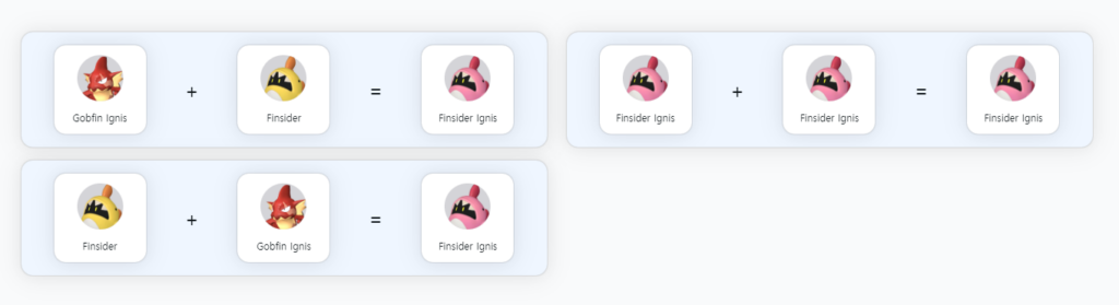 Let me introduce the breeding method I use. Today’s goal is Finsider Ignis.